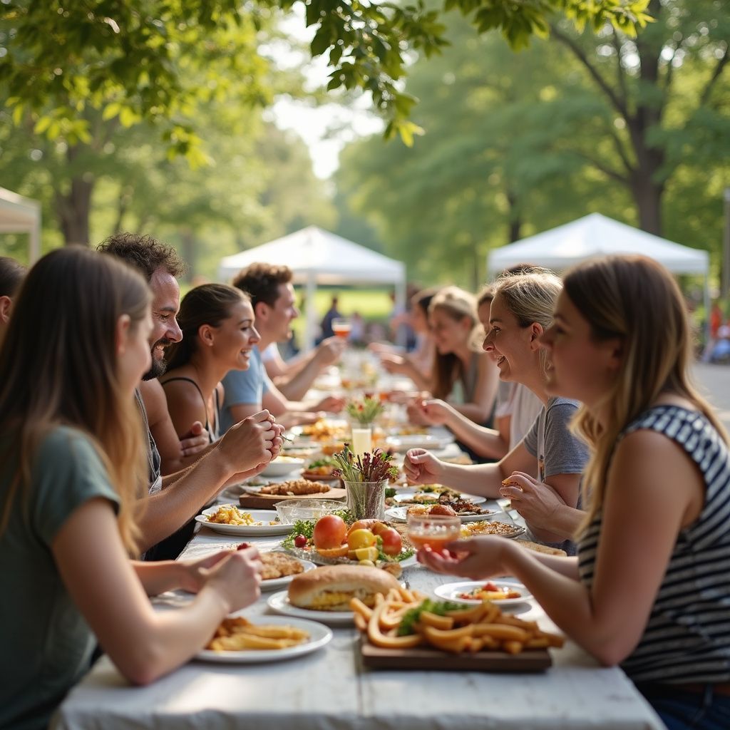 An evening screening of a family-friendly film under the stars, with food trucks and activities.